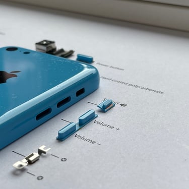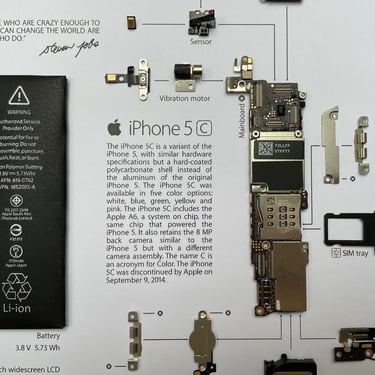 Upcycled Tech Art - iPhone 5C (blau), handmontiert & gerahmt