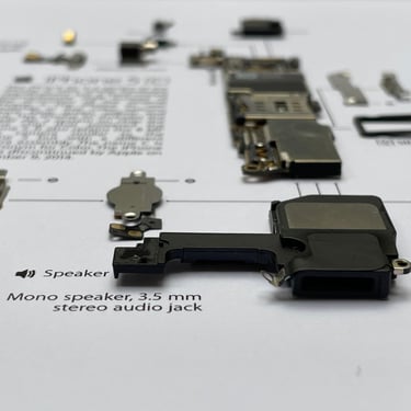Die Teile sind dauerhaft fixiert und nicht funktionsfähig. Der Akku ist aus Sicherheitsgründen nur eine Attrappe. Leichte Unterschiede in Patina/Farbton einzelner Komponenten sind gewollt und Teil des Unikatcharms. iPhone® ist eine Marke von Apple Inc.; dieses Kunstwerk steht in keiner Verbindung zu Apple.
